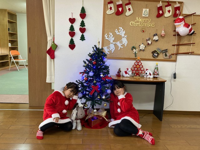 お姉ちゃまとお揃いの🧑🎄サンタコスチュームで今年最後のレッスンに臨んだ4歳児Mちゃん(左)🥰